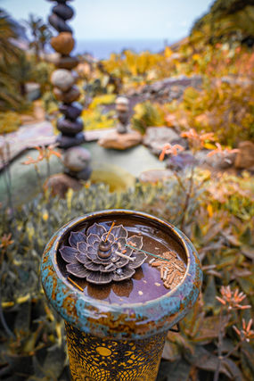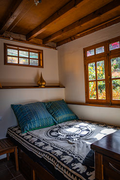 Trimurti is the main house of Finca Mohenjodaro. It is a gorgeous stone structure that graces the upper part of the finca. Stepping inside, one is greeted by a beautiful living room, adorned with statues of Indian gods that infuse a sense of cultural richness into the space. The cozy bedroom, thoughtfully designed for comfort, invites restful nights with its tasteful decor. The kitchen, adorned with vibrant Spanish tiles, radiates a charming warmth, making culinary endeavors a delightful experience. A pretty veranda extends from the main house, offering a serene spot to bask in the island's natural beauty, creating a seamless connection between the indoors and the lush surroundings. Trimurti is a harmonious blend of rustic charm and thoughtful design, providing guests with an inviting retreat amidst the stunning landscapes of La Gomera.